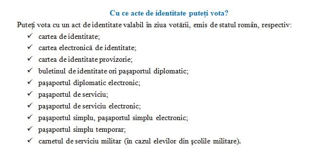 Romanian citizens eligible to vote may exercise this right by presenting a valid Romanian identity card or a valid Romanian passport.