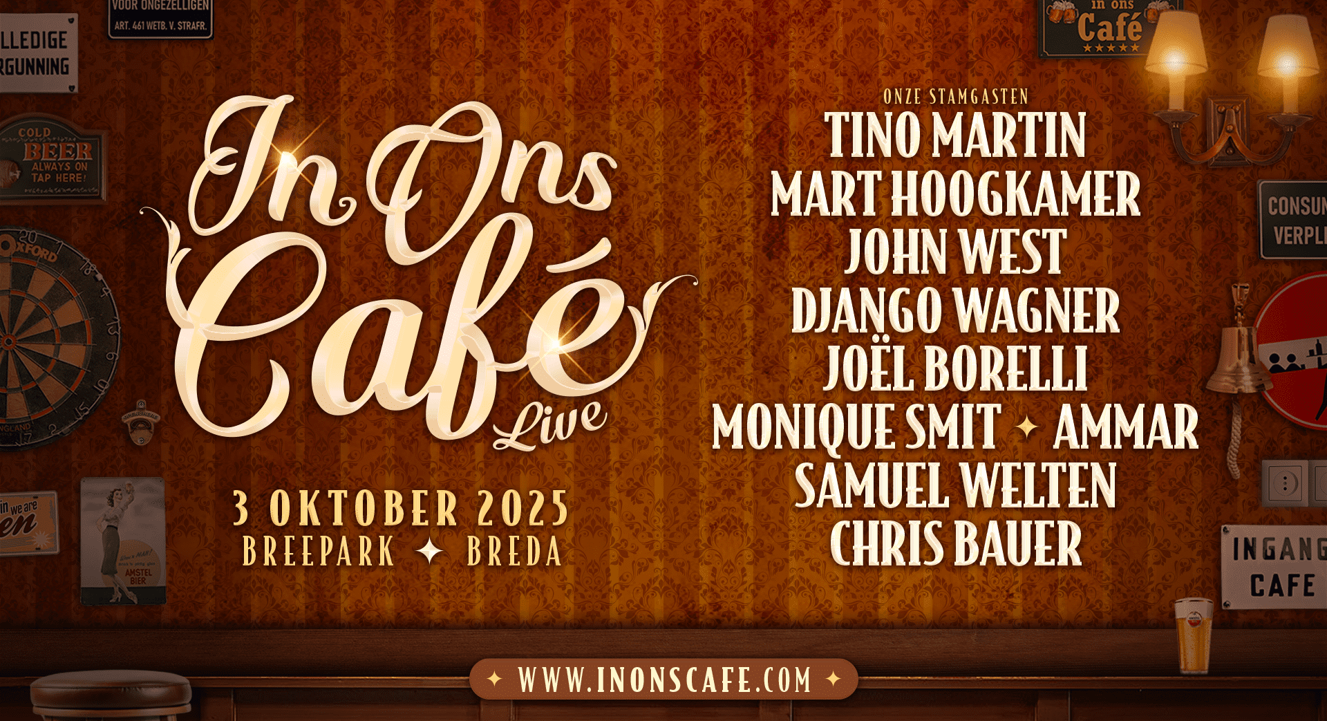 In Ons Café opent opnieuw haar deuren op 13 november 2026 bij Breepark in Breda, met jouw favoriete Nederlandse artiesten!